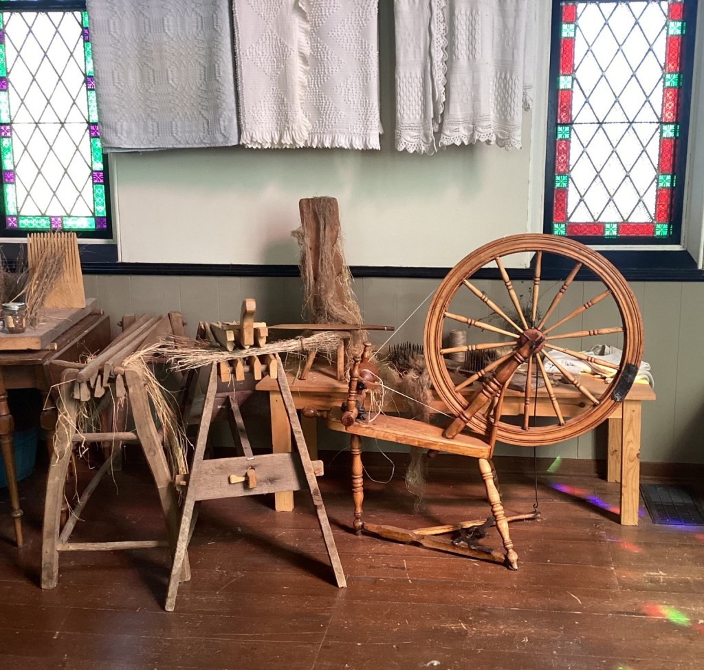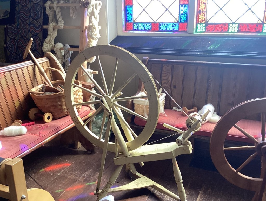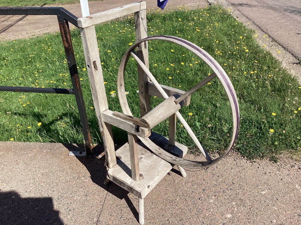 Hand powered spinning wheel – Musee Kent July 2024 Elizabeth Lyons Morrison