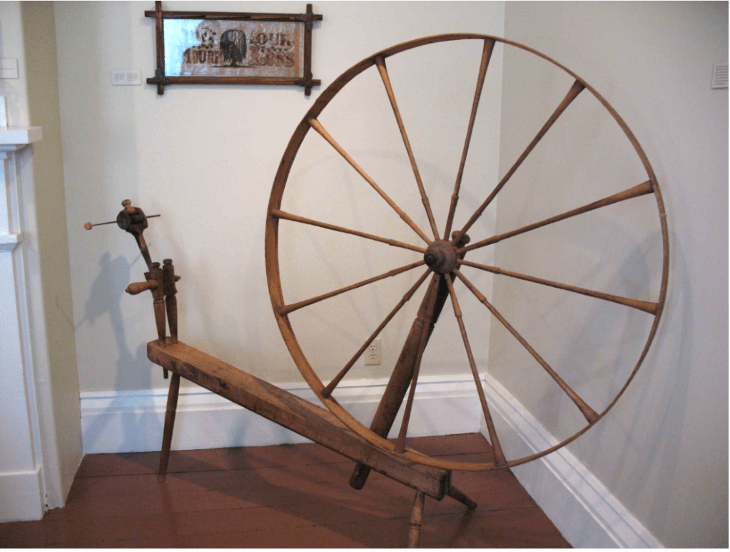 For more than a century spinning wheels have been a recognizable feature of our past. You don’t have to visit a museum to see them, although you will find more than one in most regional museums2. Spinning wheels still decorate grand old homesteads and suburban bungalows alike. Their success as decorative objects has made them representative of the entire homebased textile industry if not an entire era. In reality, spinning is a critical but single step among many in the production of cloth and other textiles. Even within the single critical step there is complexity and nuance which the story we know, misses. The first being not all spinning wheels are created equal, many are actually non-functioning replicas3.
