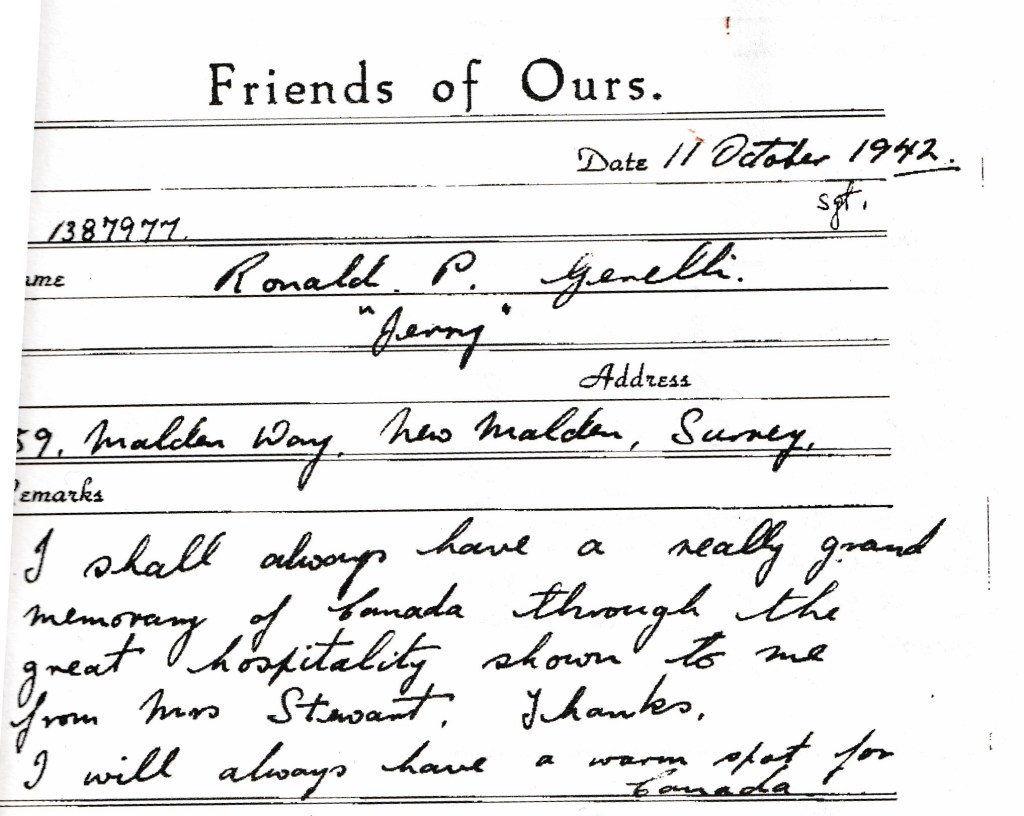 Sgt ‘Jerry’ Gerilli and what Mabel Stewart’s war effort meant to him… It seems Jerry’s prediction was correct he remembered Canada since he remained in contact with Mabel’s family until his death in 2010.