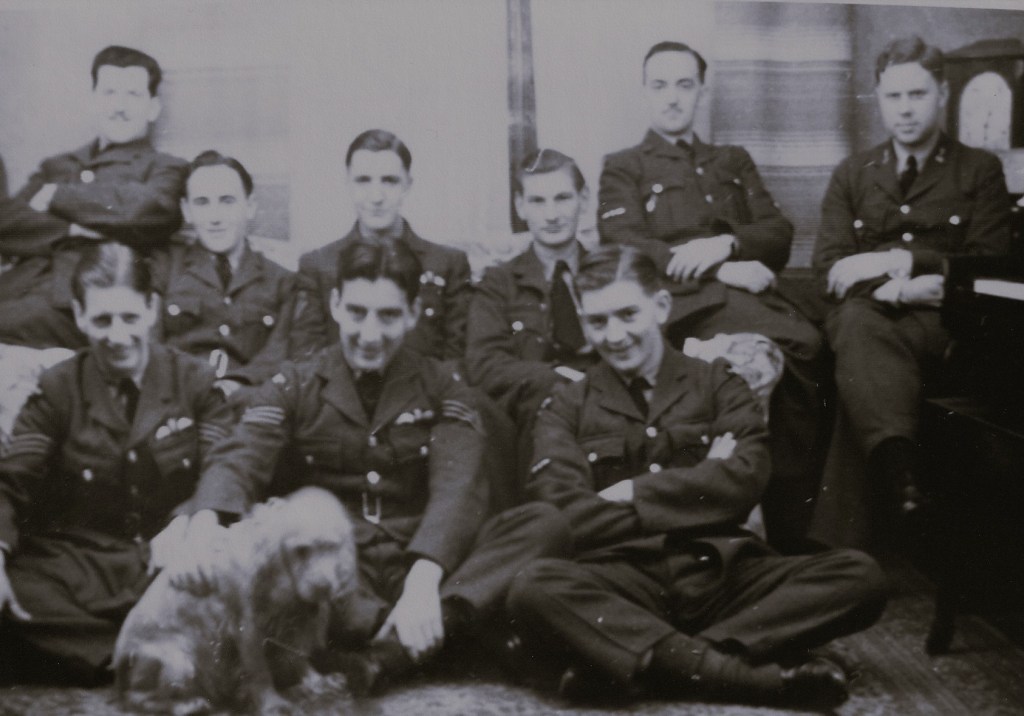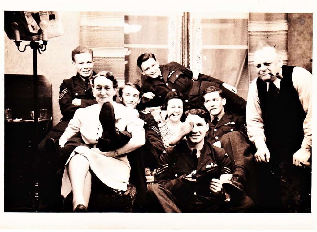 A group of Airmen, gathered in the home of Mabel Stewart, Moncton, NB c. 1942